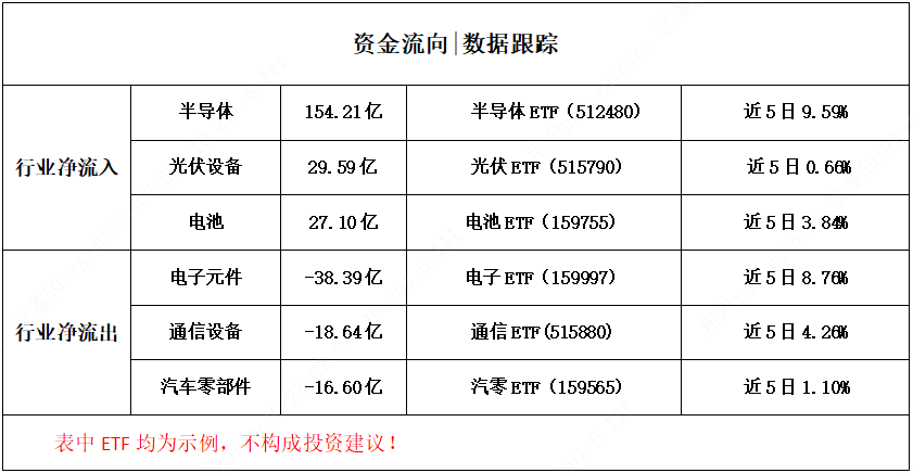 半导体ETF(512480),近5日涨幅为9.59%。追踪指数为中证全指半导体指数(H30184)。前五大抓仓为,中芯国外、朔方华创、海光信息、寒武纪、豪威集团。